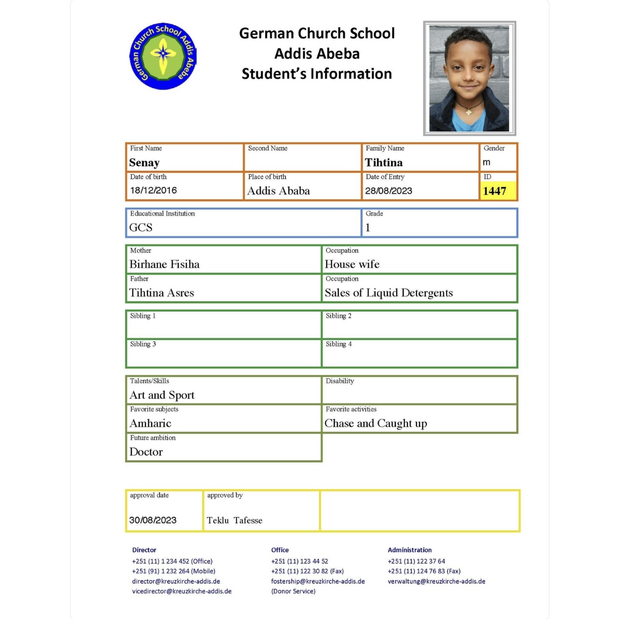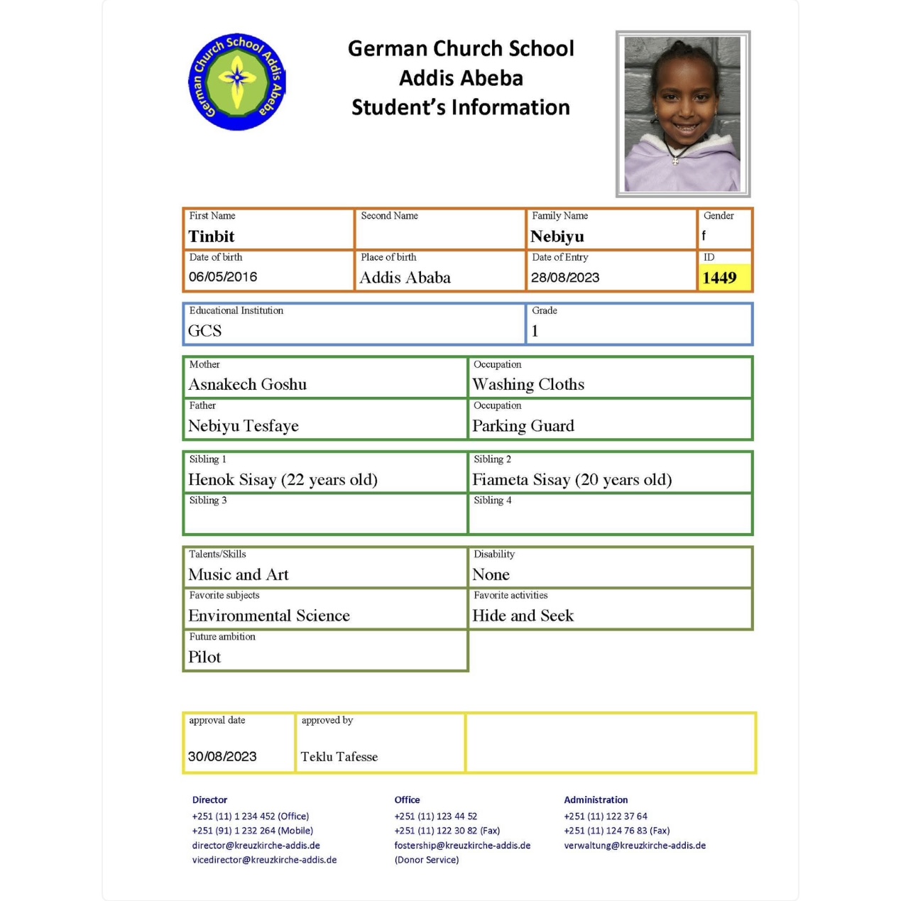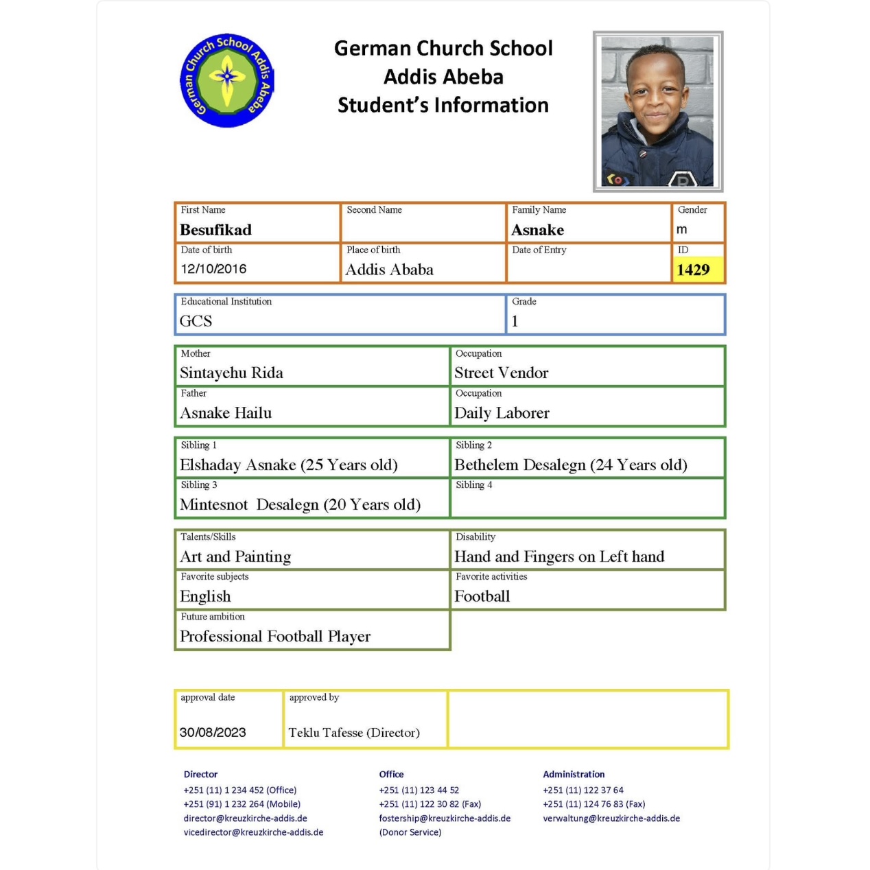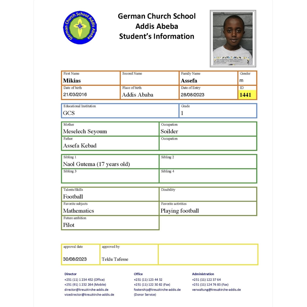 In Äthiopien unterstützen wir die inklusive German Church School. Die German Church School in Addis Abeba ist das diakonische Projekt der dortigen ev.-luth. Kreuzkirche mit etwa 300 Schülern. Der deutsche Verein Melkam-Edil organisiert die Hilfe aus Deutschland.