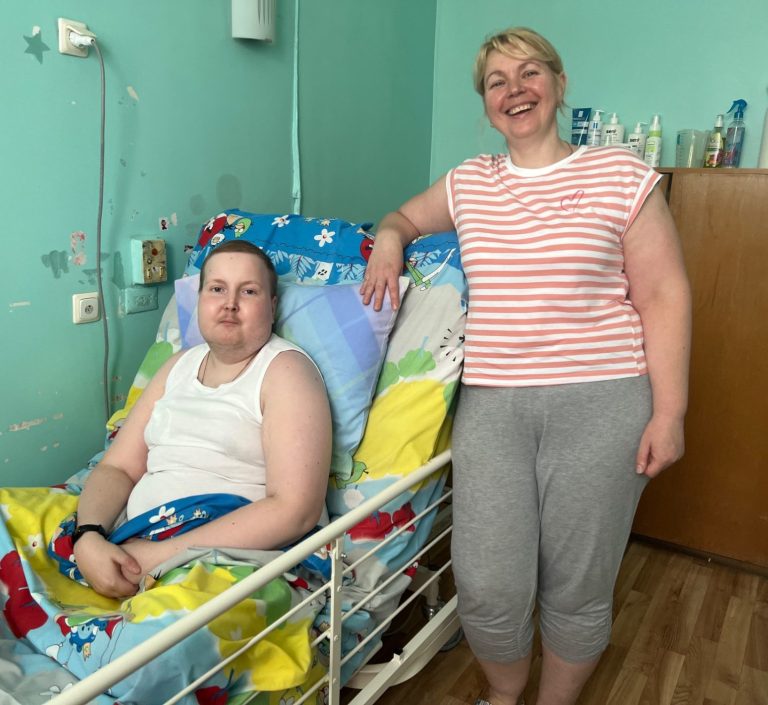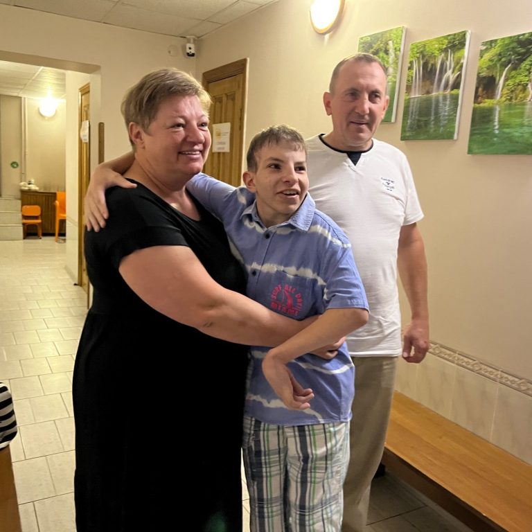 Jura Polischschuk ist trotz seiner Behinderung immer gut gelaunt und freundlich. Er erhält Bewegungstherapie im Reha-Zentrum.