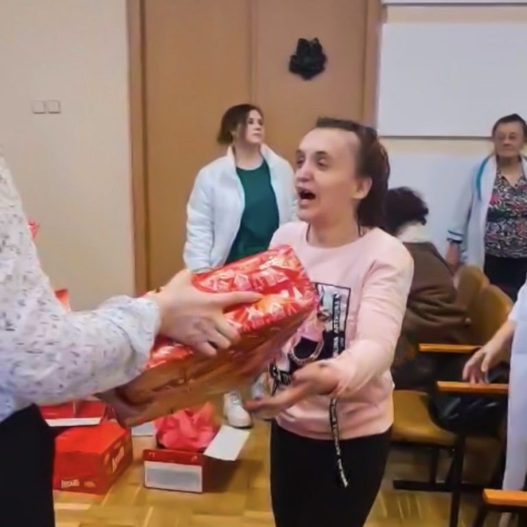 Etwa 96 Mädchen und junge Frauen, viele mit körperlichen oder mentalen Behinderungen, erhalten Weihnachtspakete aus Hamburg.