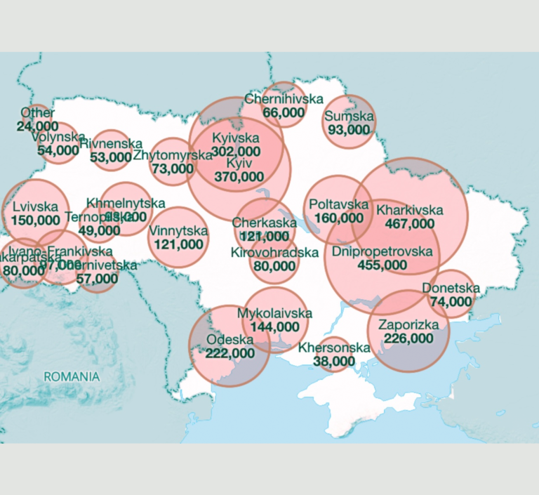 Es gibt in der Ukraine Ende 2025 nach Angeben des UNHCR schätzungsweise 3,7 Millionen Binnenflüchtlinge, von denen etwa 1,2 Millionen akut Wohnraum benötigen.